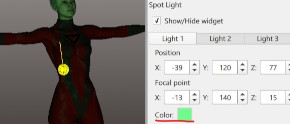 The three spot lights, edited that way, could be saved info FBX file, by the Export command in the File menu.