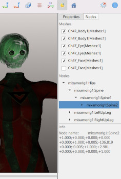 There are two types of Nodes, with Meshes(Geometry), and with Transforms, preserving parent aware transformations.